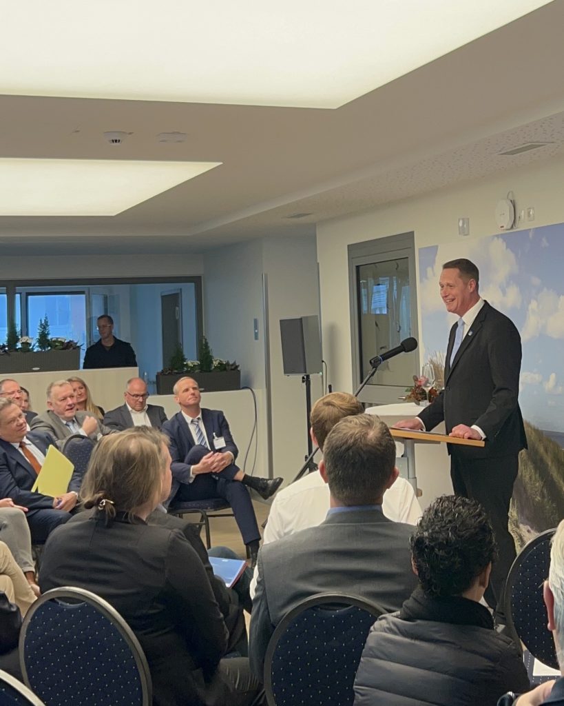 Der Festakt begann um 12:00 Uhr mit dem Einlass und einem alkoholfreien Sektempfang. Nach der Begrüßung durch den Landrat und die Geschäftsführung folgte das Grußwort des Landrats Holger Heymann, der zugleich Vorsitzender des Aufsichtsrates ist. In seiner Ansprache betonte er die große Bedeutung des Projektes für die Zukunft des Hauses: