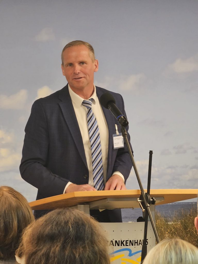 „Als Landrat und Vorsitzender des Aufsichtsrates liegt mir die Zukunft unseres Krankenhauses besonders am Herzen. Die Neustrukturierung des Pflegedienstes ist ein bedeutender Meilenstein – nicht nur baulich, sondern vor allem inhaltlich. Wir schaffen moderne Rahmenbedingungen, um Pflege wieder stärker in den Mittelpunkt zu rücken – zum Wohle der Mitarbeitenden und der Patientinnen und Patienten gleichermaßen. Dieser Neubau ist ein klares Bekenntnis zum Standort und zur Weiterentwicklung unseres Krankenhauses. Er zeigt: Wir investieren nicht nur in Steine, sondern in Menschen – in bessere Arbeitsbedingungen für unsere Pflegekräfte und in eine zukunftsfeste Gesundheitsversorgung für unsere Region.“