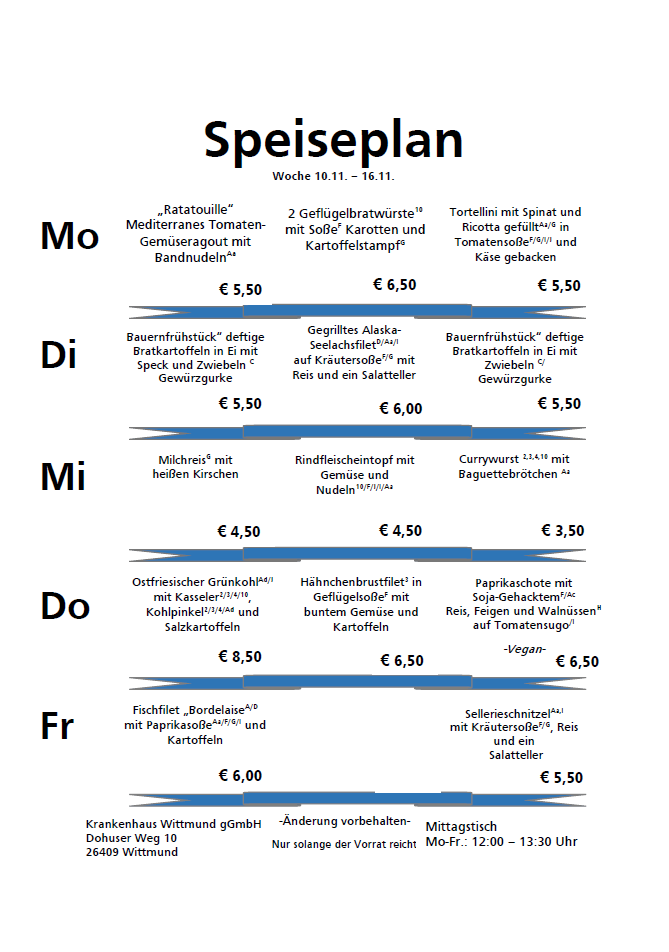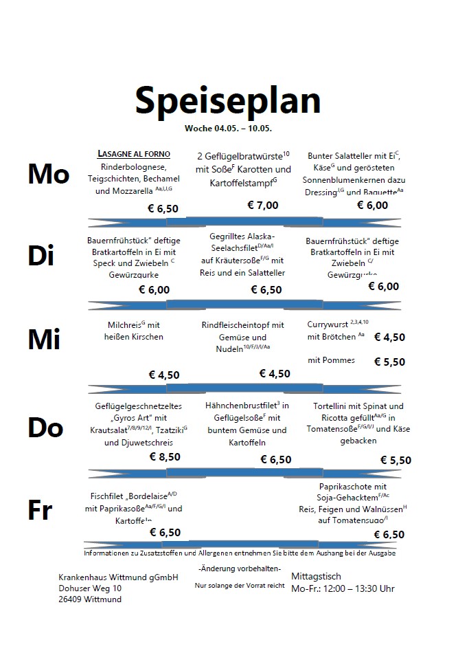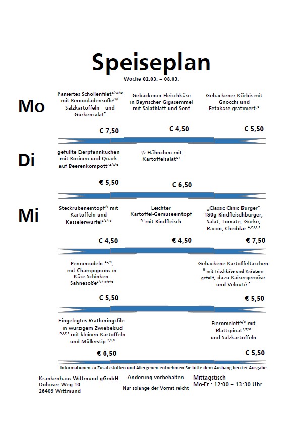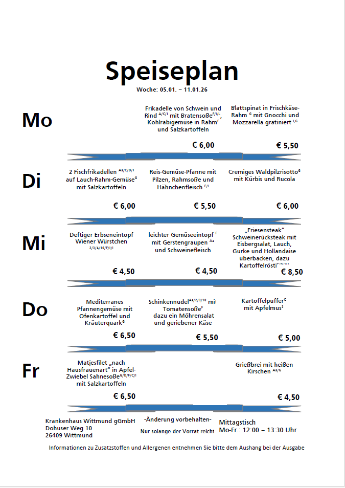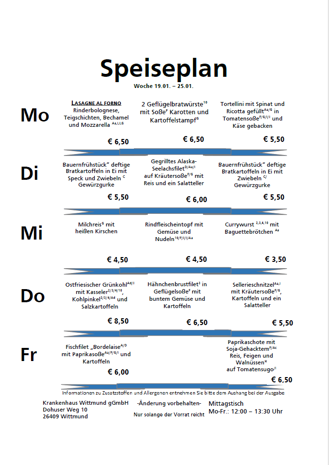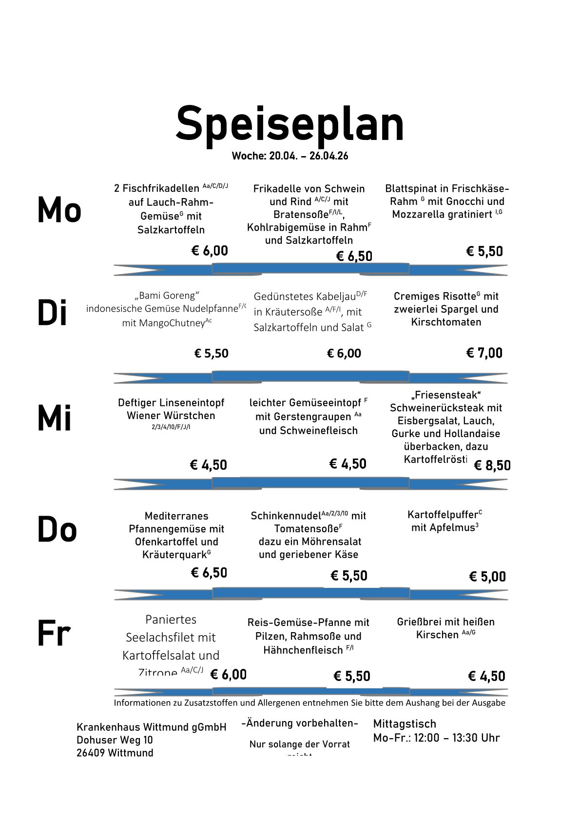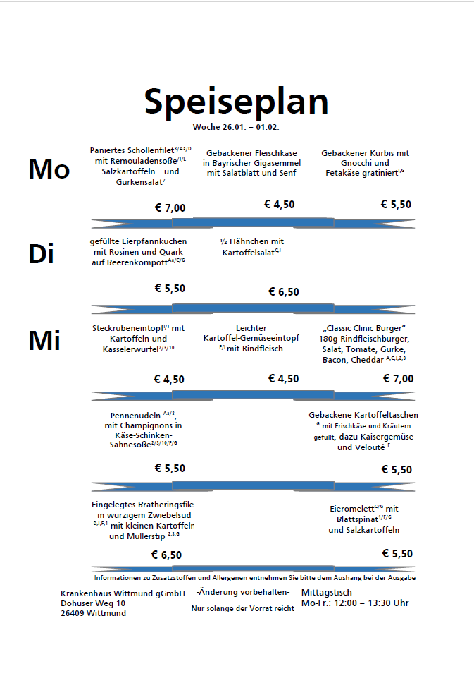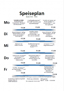 Der Speiseplan: Jede Woche neu, jede Woche frisch. Probieren Sie selbst!
