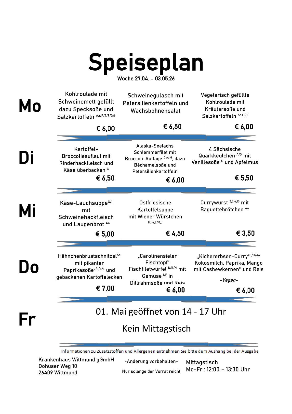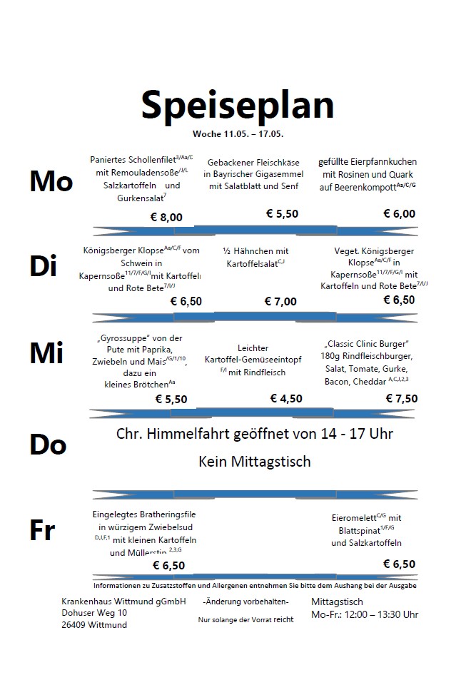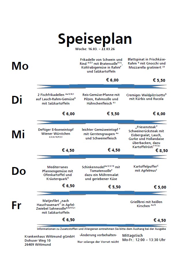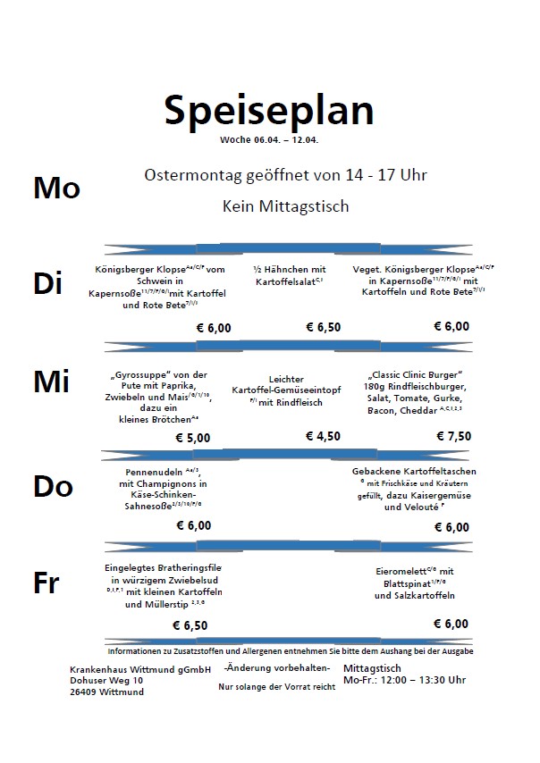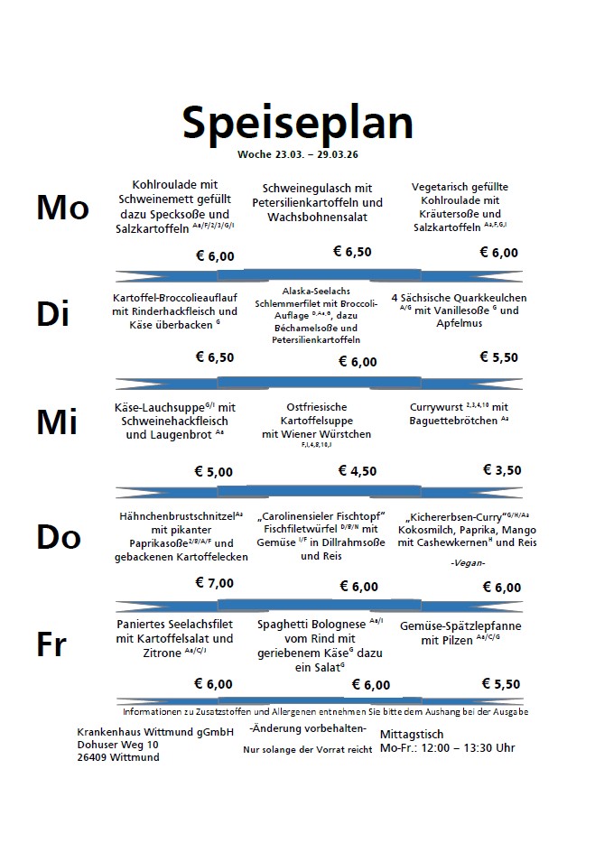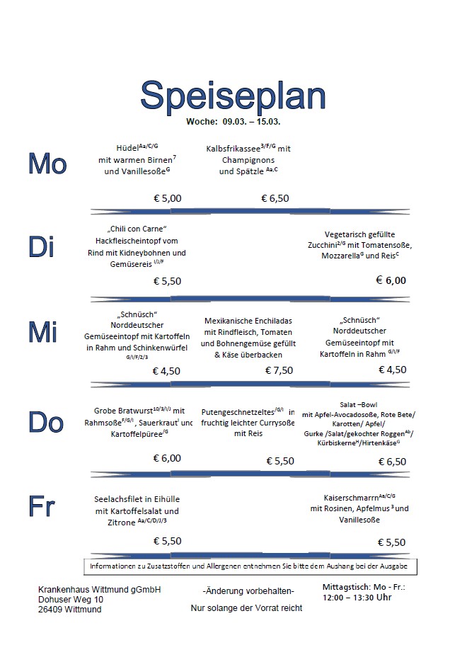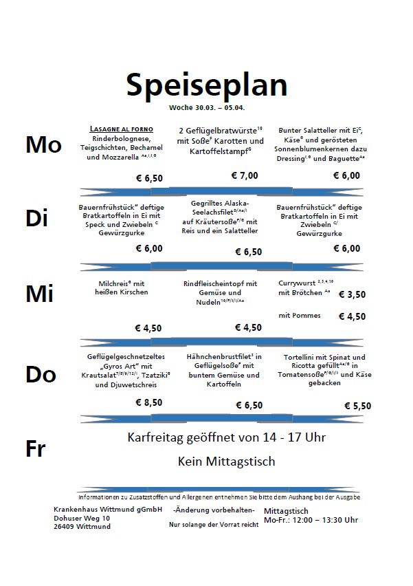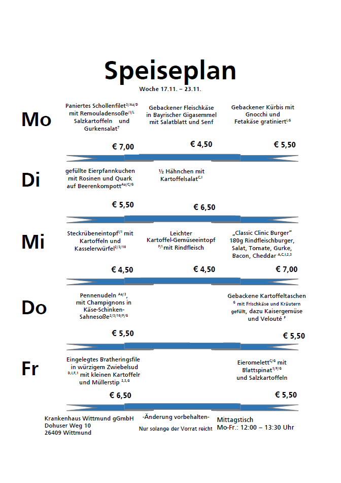 Der Speiseplan: Jede Woche neu, jede Woche frisch. Probieren Sie selbst!