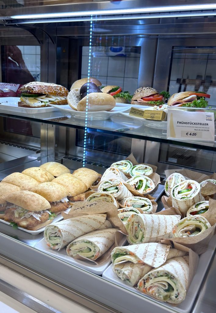 neben süßen und herzhaften Snacks vom Donut bis zum Wiener Würstchen gibt es auch kalte Getränke, Schokolade und natürlich Kaffee in zahlreichen Variationen. Mitarbeiter und Besucher haben die Möglichkeit, sich zwischendurch zu verpflegen, vor allem der Mittagstisch ist bei vielen sehr beliebt.