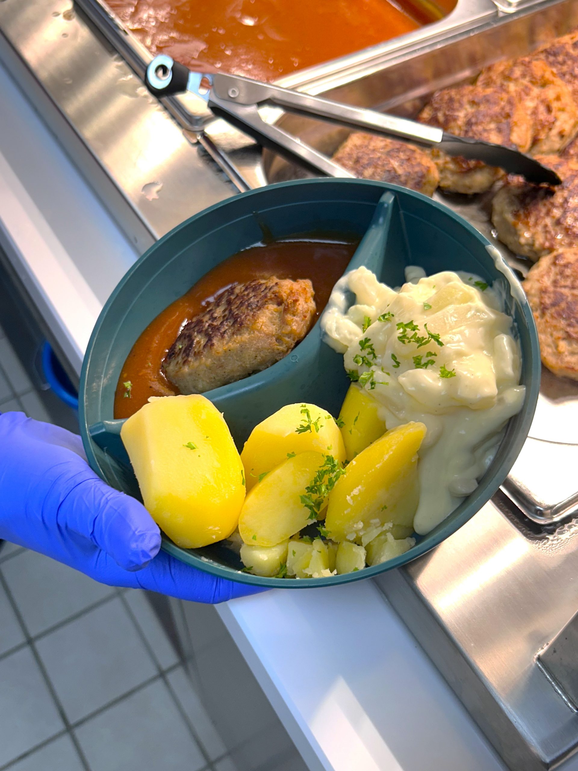 • Bei der Zubereitung der Mahlzeiten legt Küchenchef Sven Jacobi großen Wert auf Regionalität und Nachhaltigkeit. Wenn möglich, kommen die Zutaten von hiesigen Händlern.